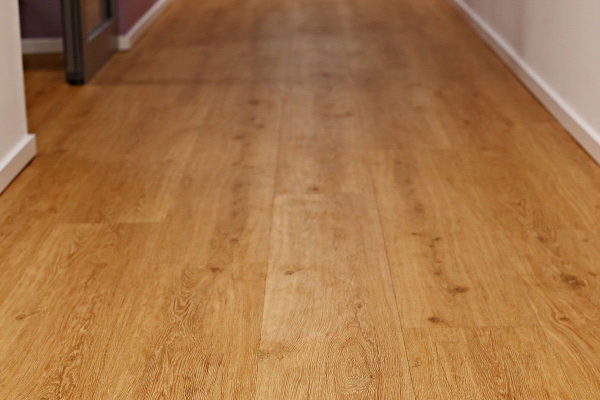 In den Räumen der neuen Hausgemeinschaft des Pflegedienstes Daheim e.V. hat Rickmann einen neuen Boden gelegt. Die 1.100qm Designbelag sorgen mit der warmen Holzoptik für eine wohnliche Atmosphäre. Das gewählte Material ist dabei gleichzeitig strapazierfähig und leicht zu pflegen.