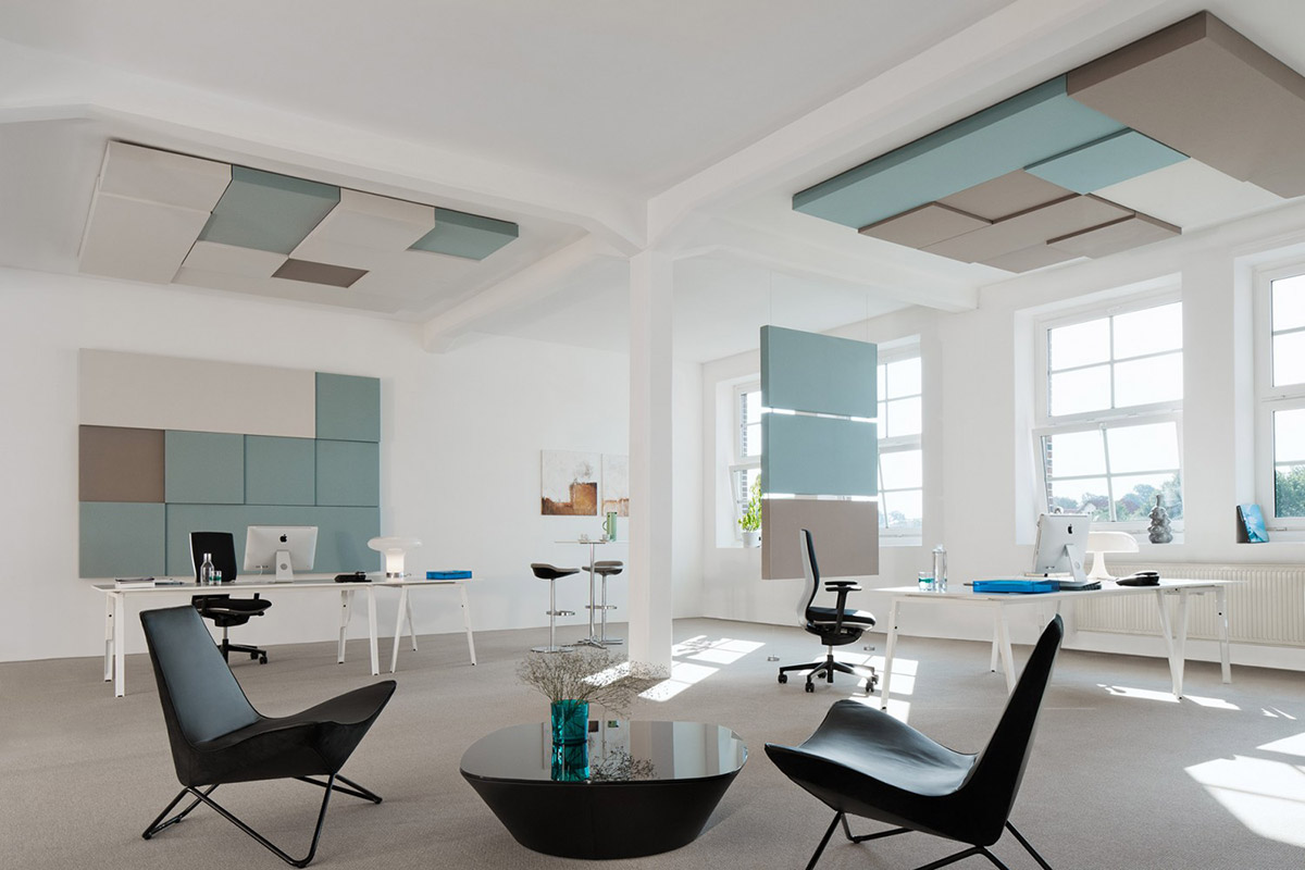 Wählen Sie einfach aus einer großen Palette aus Formen und Farben. So gewinnt ein Raum neben der Akustik auch an Ästhetik.