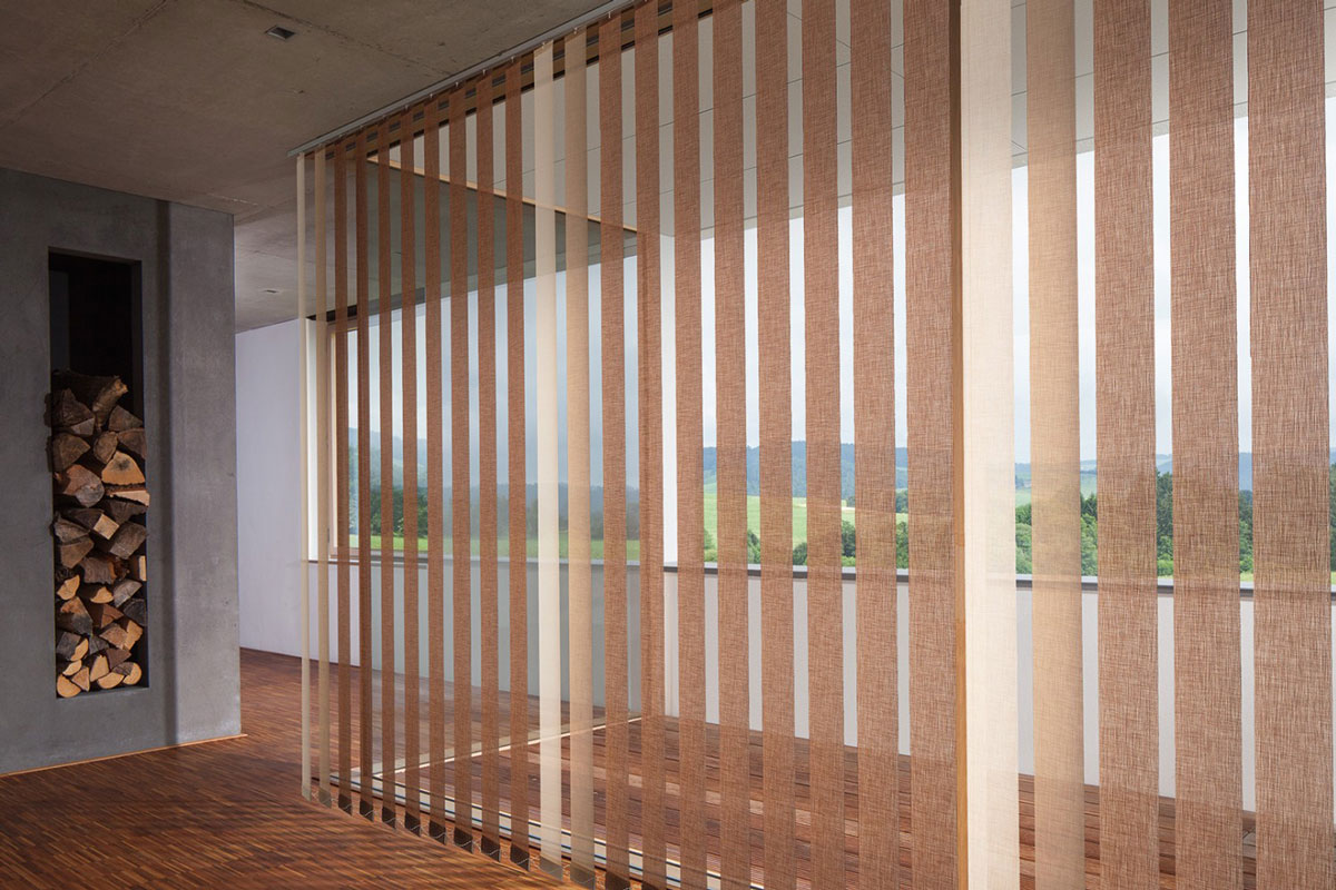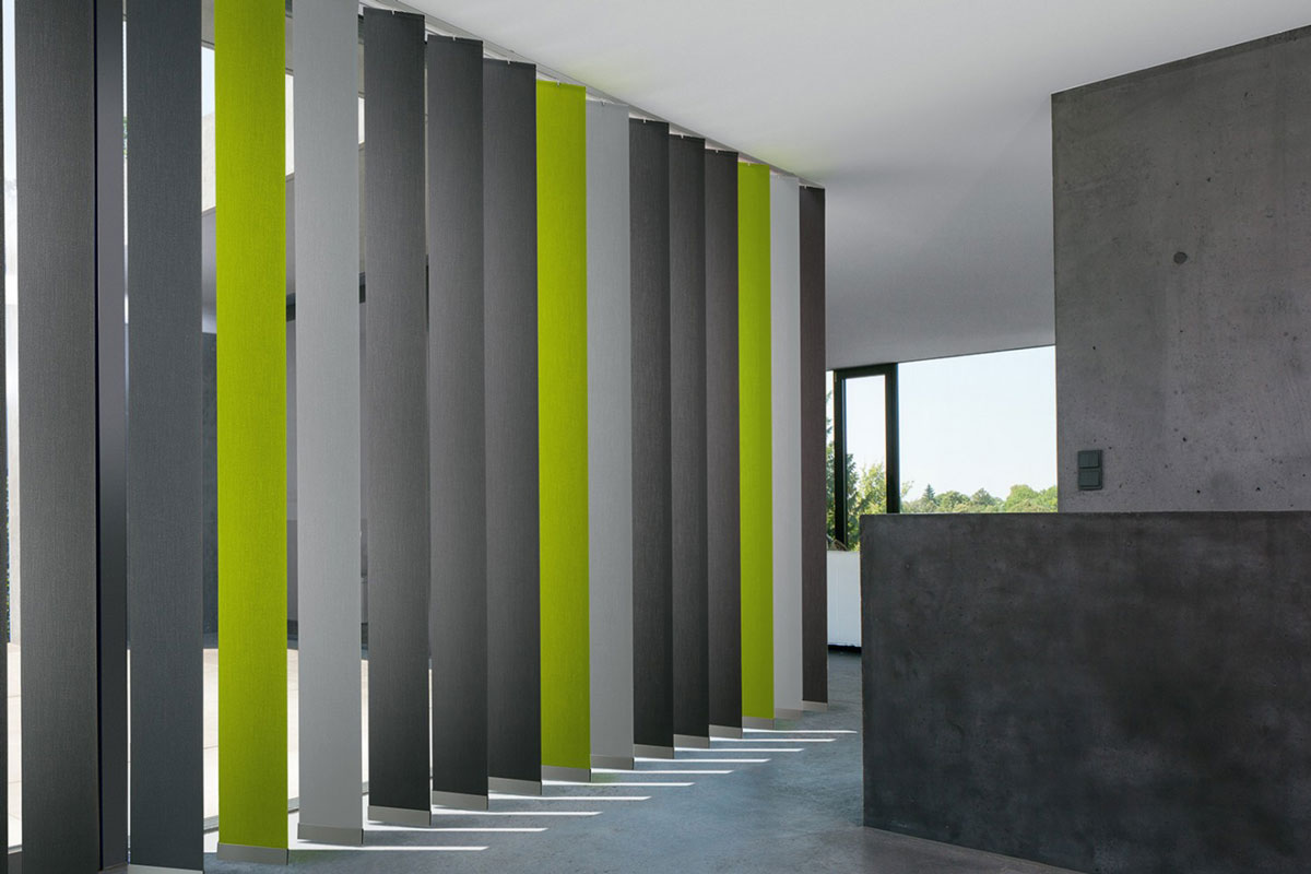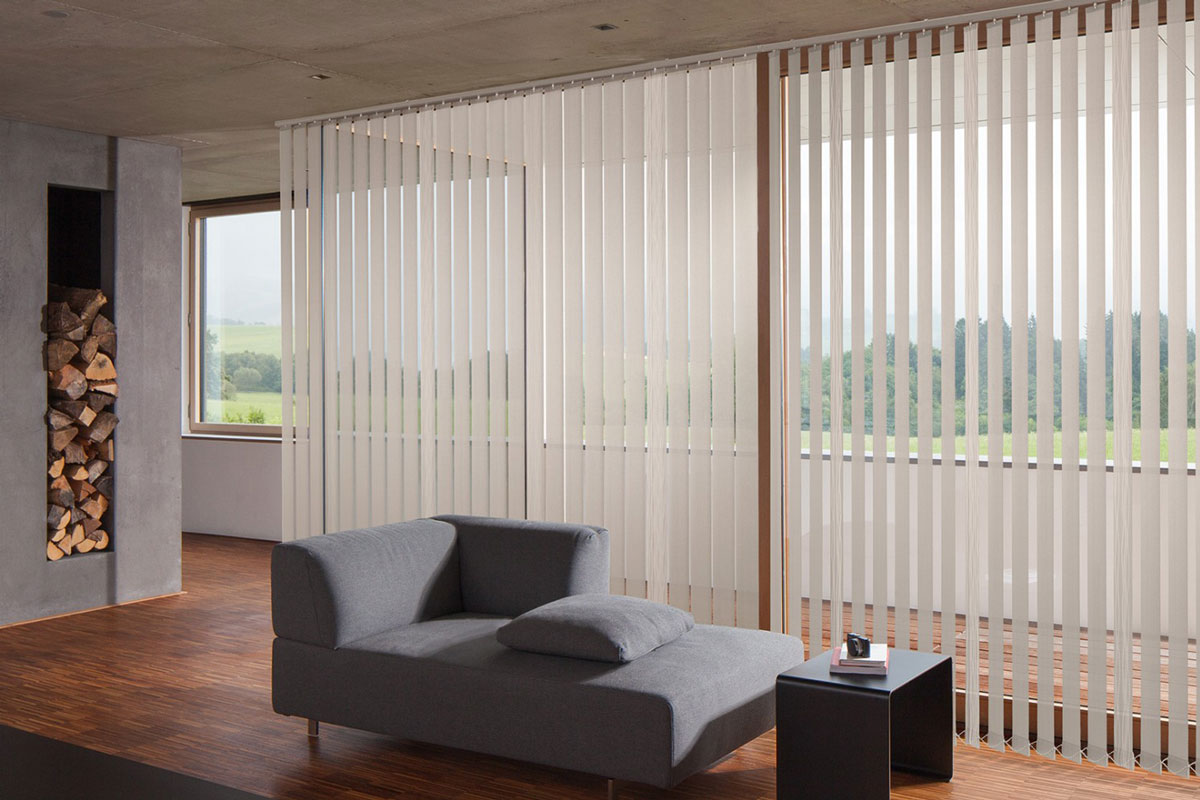 Damit kann der Einfall von Sonnen- und Tageslicht optimal reguliert werden – zum Beispiel an großen Fensterfronten, Türen sowie Oberlichtern. Als Raumteiler bieten Vertikalanlagen ebenfalls zuverlässigen Sicht- und Sonnenschutz und beeinflussen die Wohn- und Arbeitsatmosphäre positiv.